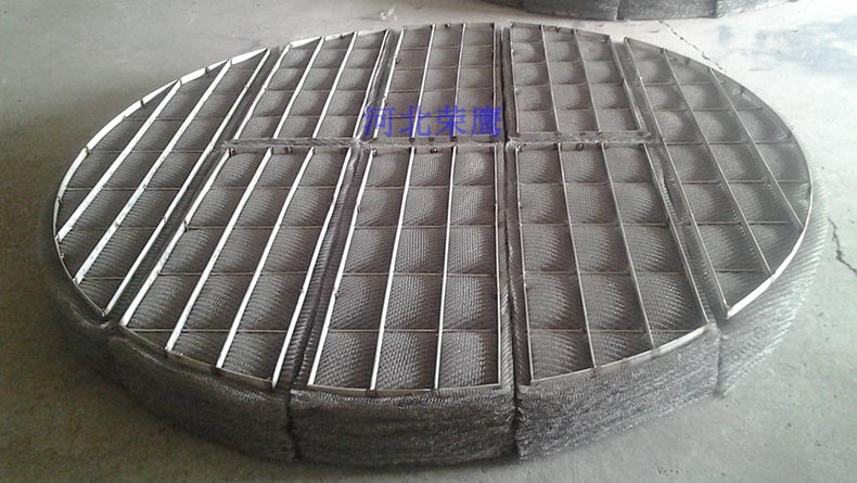 根據介質粘度的不同和液沫脫除要求的不同 ,絲網除沫器一般采用線徑為 0.25 ~ 0.30 mm 的合金絲,線間距約為 6 mm,編織成圓筒狀 ,再把它展平成寬度為 300 ~ 450 mm的帶狀絲網, 用數塊或數十塊網板重疊 ,捆以金屬絲 ,置于容器內格架上, 氣流自下而上通過絲網層 。絲網除沫器型式上分類:SP型(標準型)絲網除沫器、DP型(高效型)絲網除沫器,HP型(高穿透型)絲網除沫器。